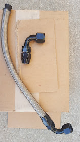 As I examined the hose I concluded that the O-ring in the upper AN fitting may have taken a beating given how close it sits to the exhaust. I took the hose over to my buddies Brandon and Ryan at BSP Motorsports who agreed. They fabricated a new hose with O-rings rated for the extreme temps. We also added a high temp sleeve to ensure this is addressed once and for all. Here is the result after I installed it: